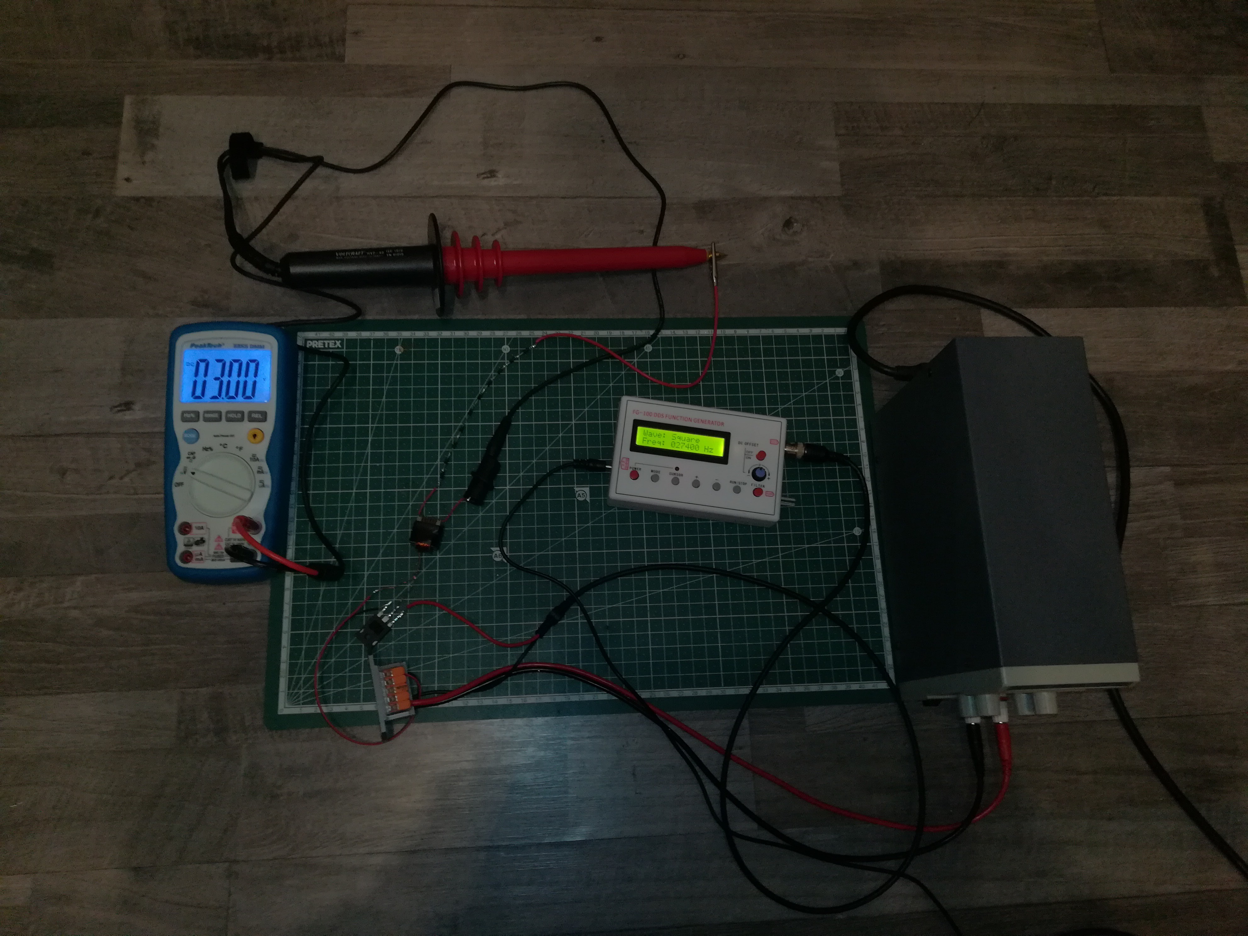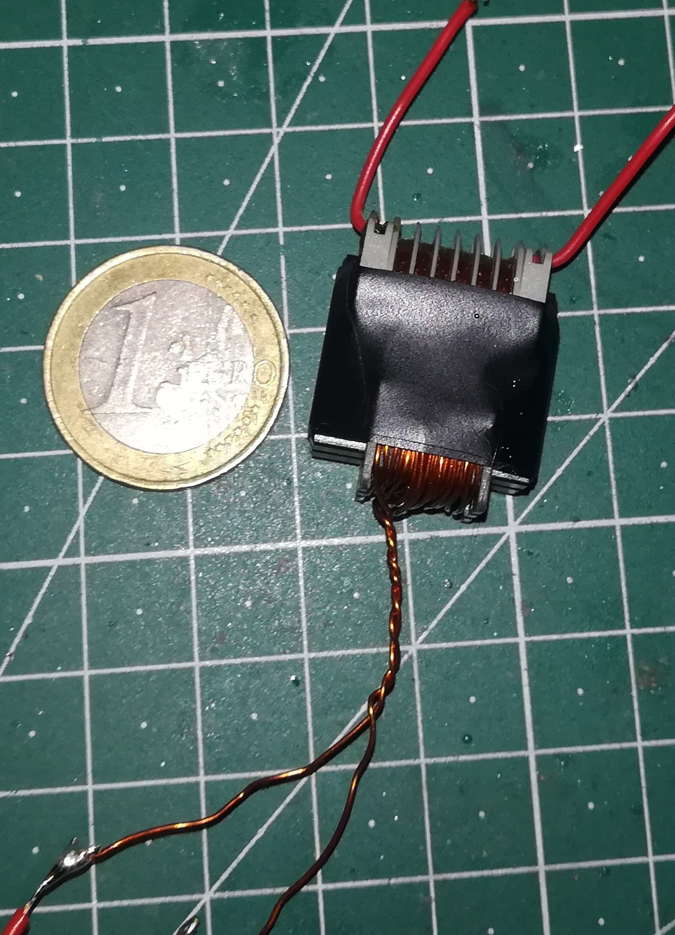 Here you can see my adjustable 3-6kV power supply. The output voltage can be adjusted by changing the switching frequency of the MOSFET.