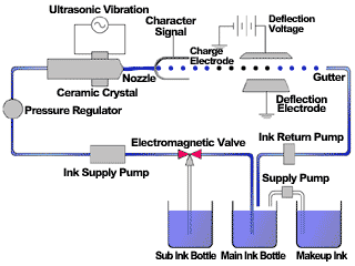 Here I will describe you in my own words based on my experience with my printer model how CIJ Printing works. The printer I have is an older model that uses pressurized air and vacuum instead of a special ink pump, what I think is really cool because it keeps everything simple and you can use any air and vacuum supply that you want.