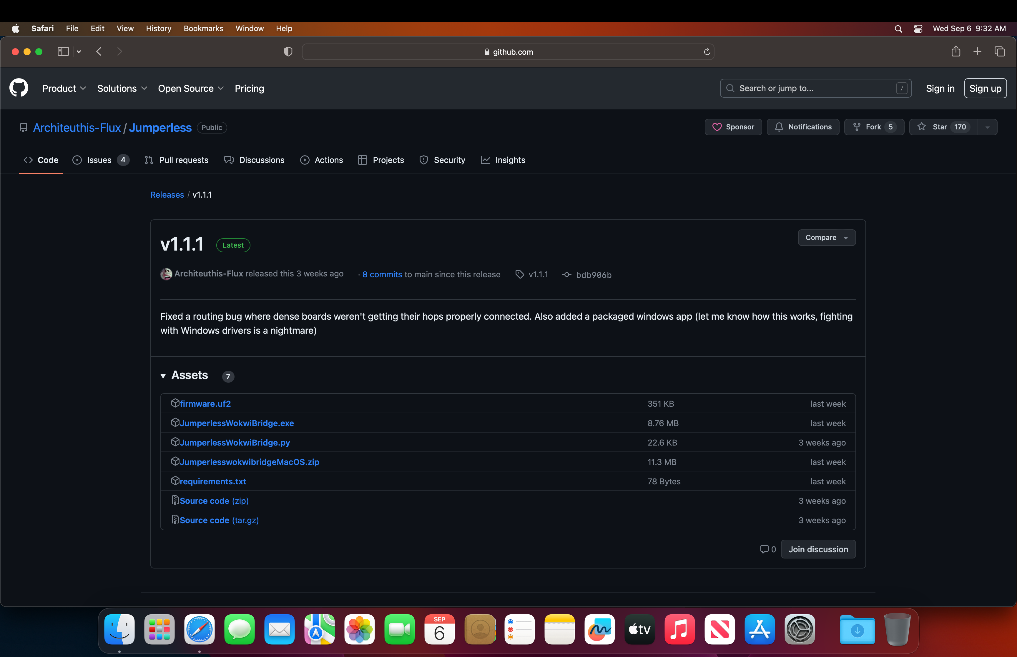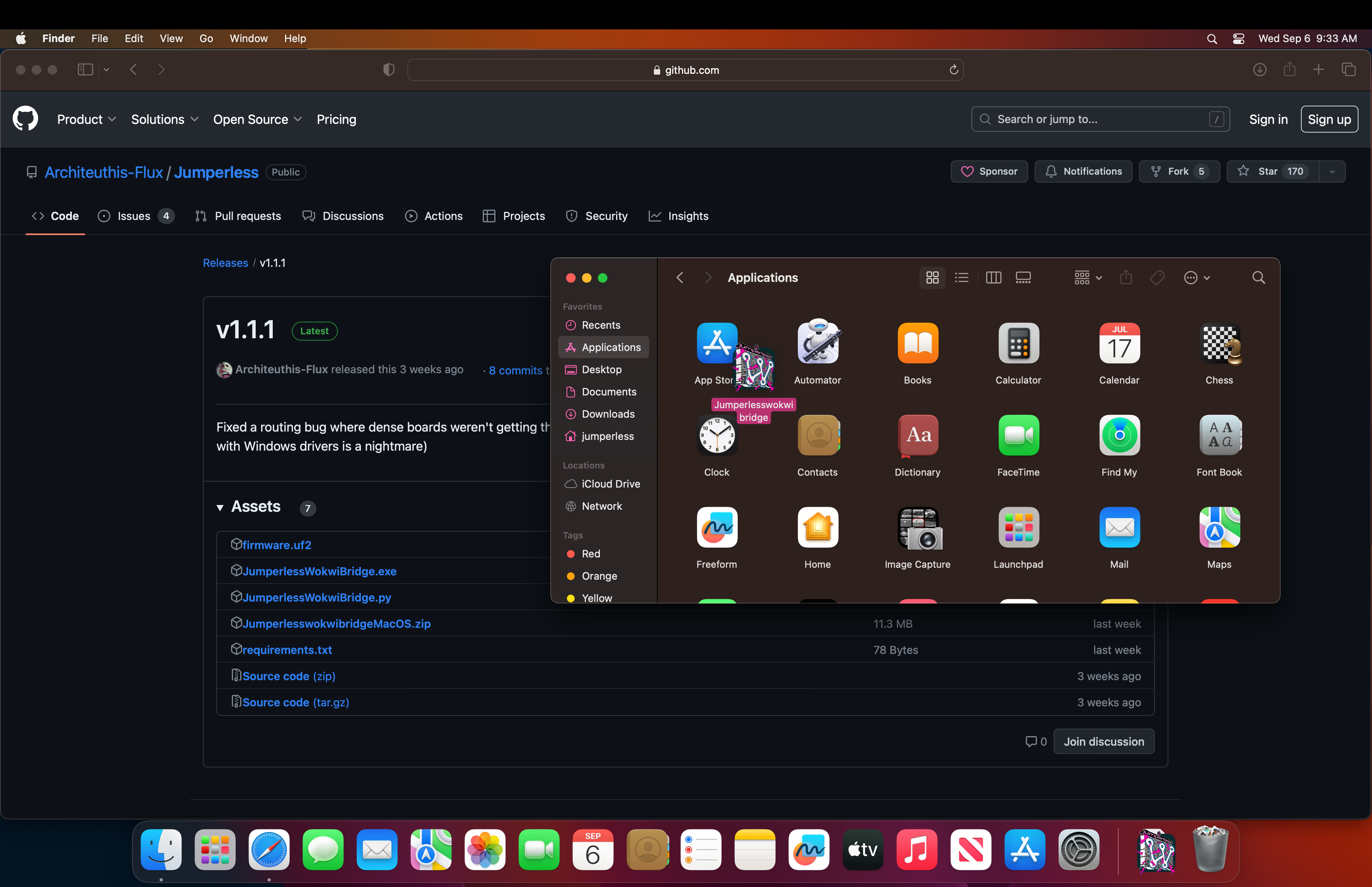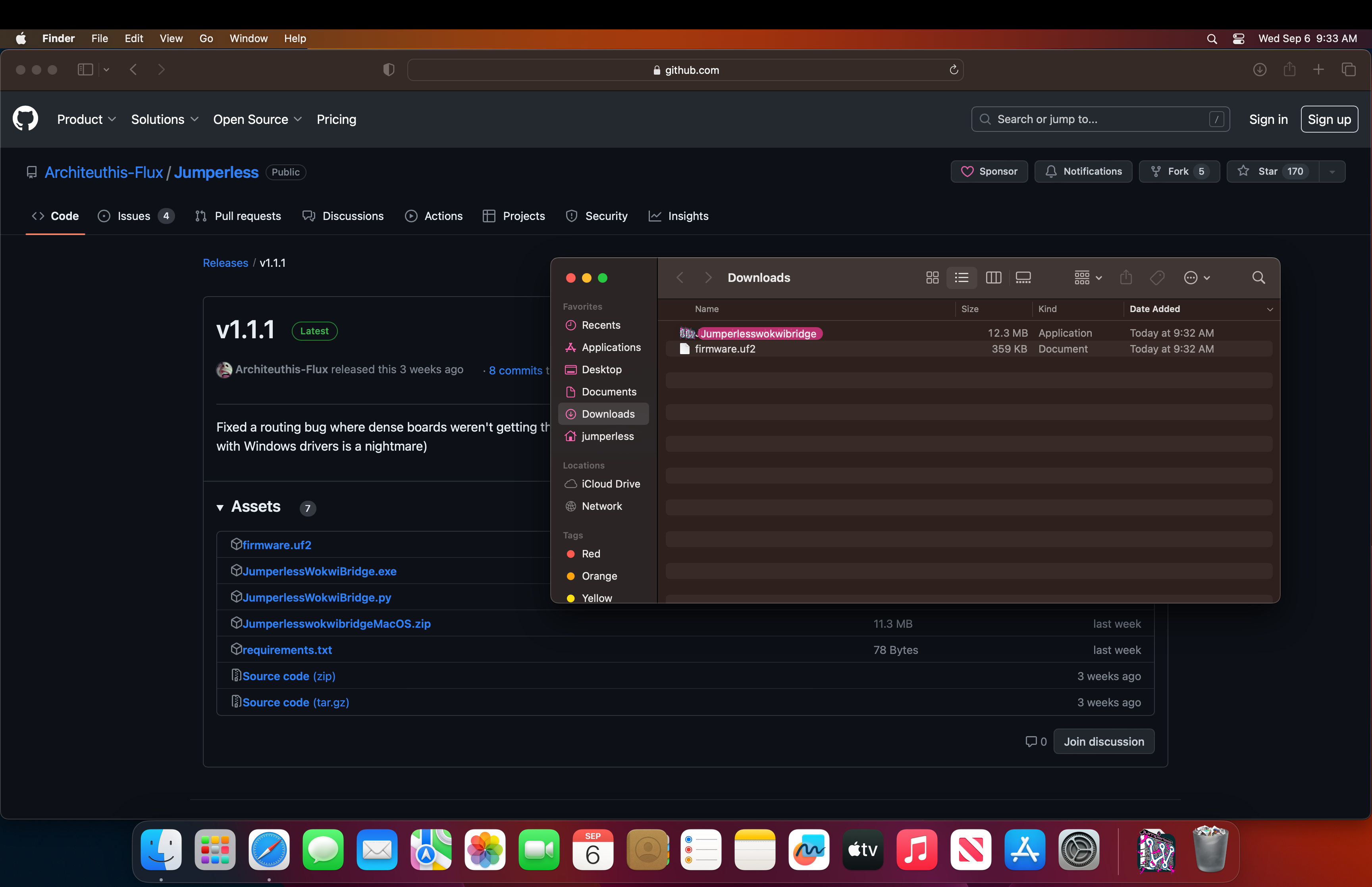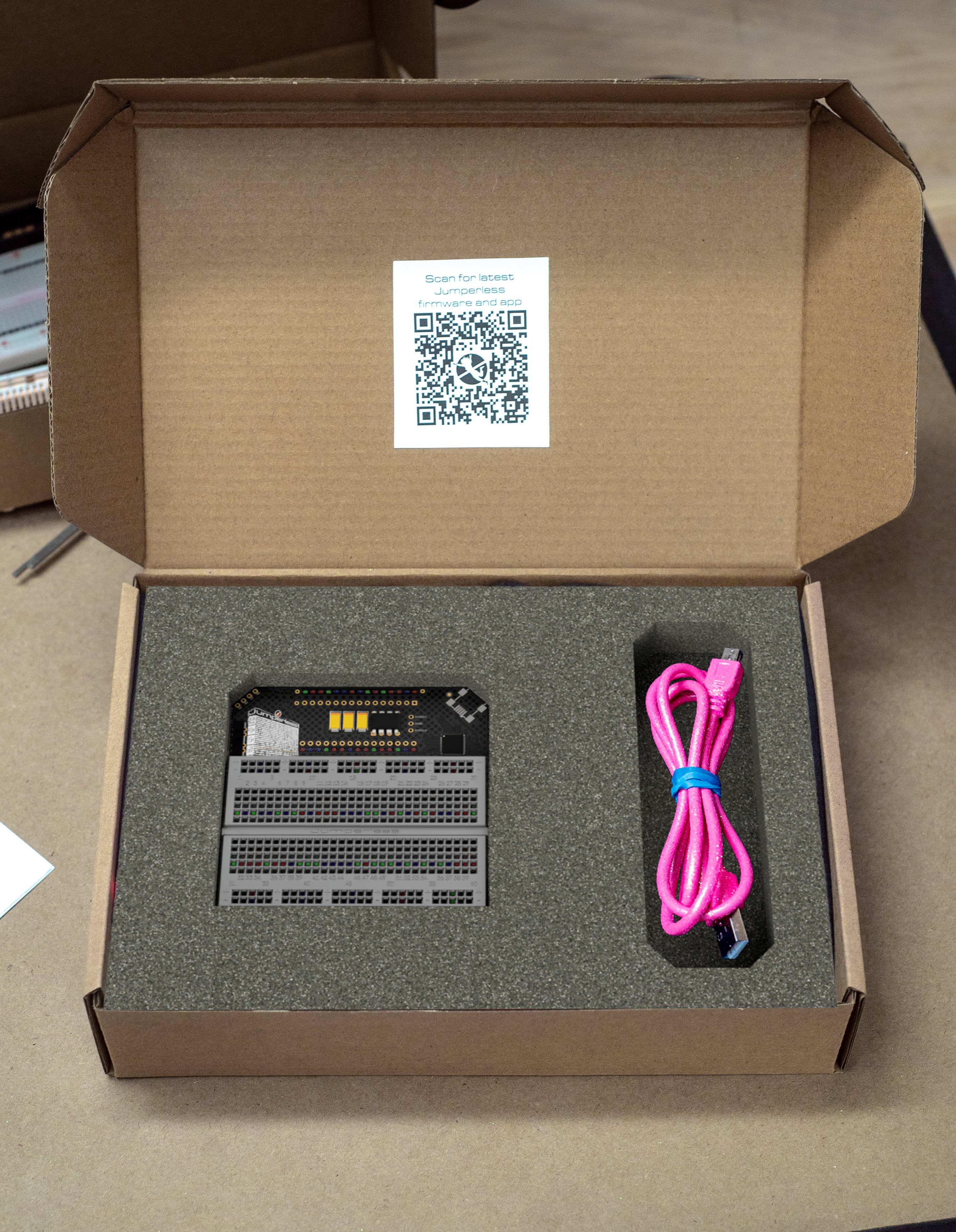 The Jumperless is controlled by an RP2040 and can be programmed exactly like a Raspberry Pi Pico. I spend every waking second of my life working on the firmware so there will be frequent updates. There are prebuilt UF2 files on Github under Releases, so whenever there's an update, just hold the USB BOOT button while plugging it into your computer (with the included pink glittery USB Mini cable,) then drag that UF2 file into the drive that pops up and you're good to go.