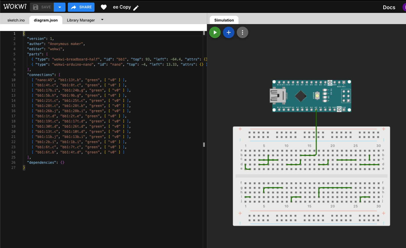 Currently, the best way to make connections is using Wokwi while running the Jumperless Wokwi Bridge app on your computer. It's a Python script and command line interface that automatically pulls any changes you make to your Wokwi project and sends them to the Jumperless.