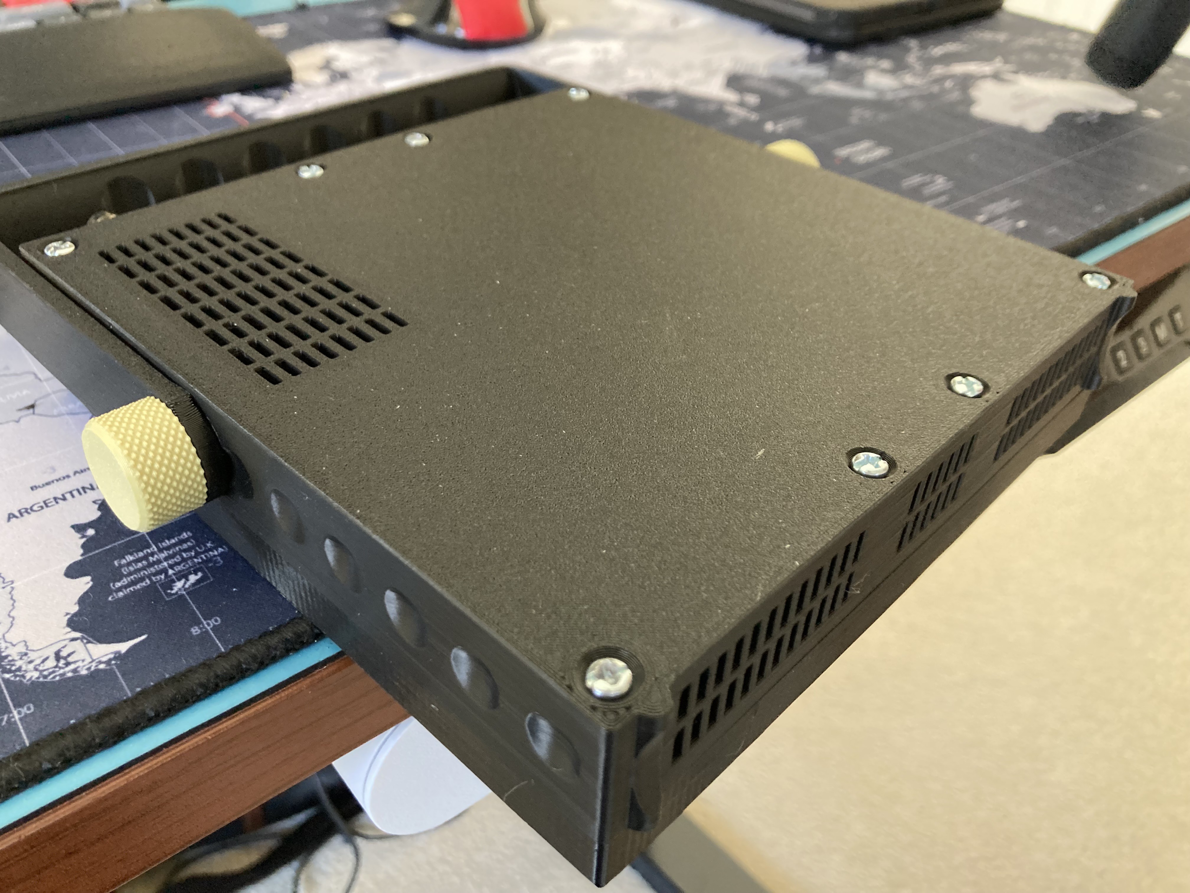 ENCLOSURE: The shell design is 3D-printable and requires just a few screws for assembly. The STL files for the project will be made available. Currently, the design is undergoing refinements, particularly to accommodate an antenna within the handle. Updates will be shared as they become available.